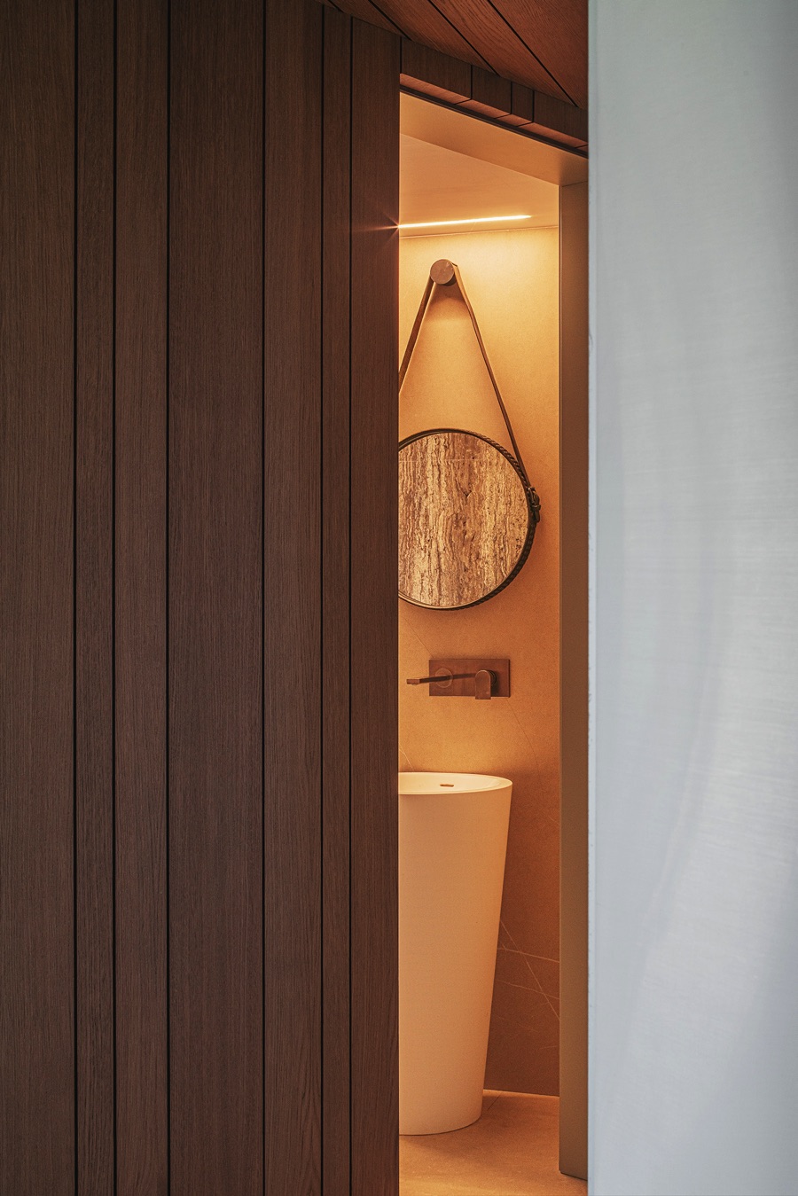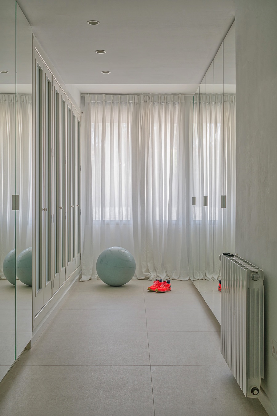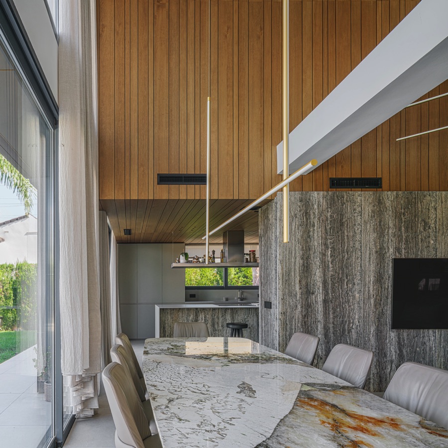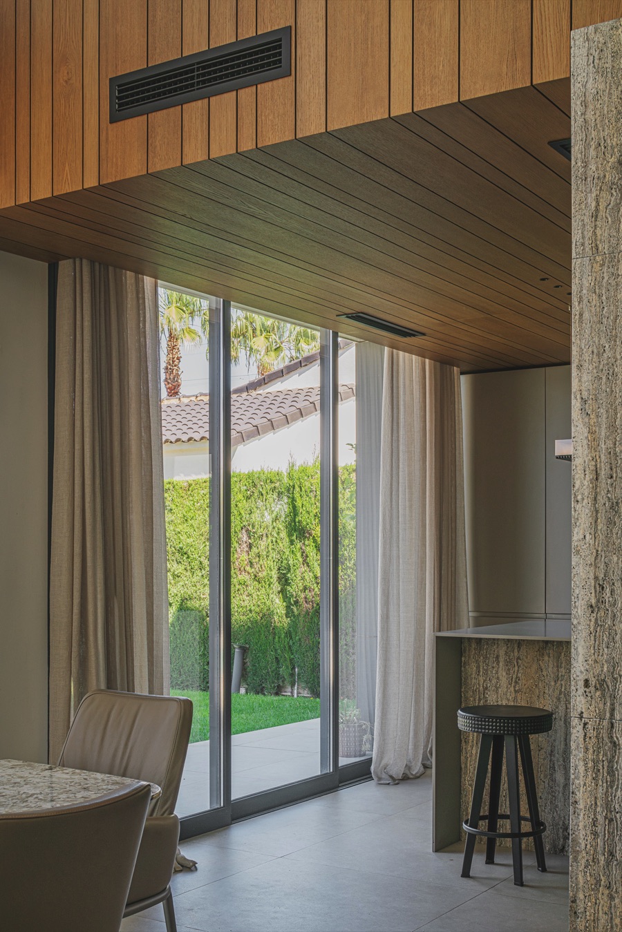 La renovación exterior incluye una fachada ventilada con elegantes placas TRESPA, combinando estética y durabilidad. Además, se ha mejorado la eficiencia energética mediante avanzados sistemas de aislamiento térmico y la instalación de placas fotovoltaicas, que contribuyen a la autosuficiencia energética. Este enfoque integral no solo moderniza la vivienda, sino que también la posiciona como un referente en eficiencia, sostenibilidad y diseño contemporáneo.
